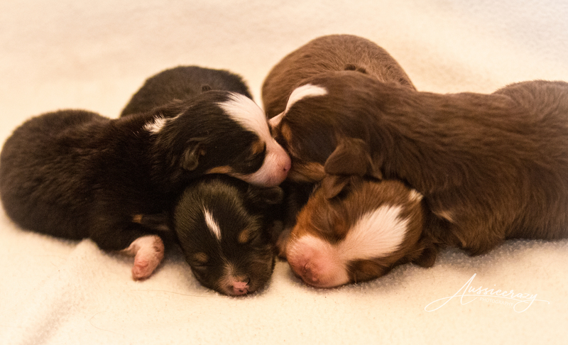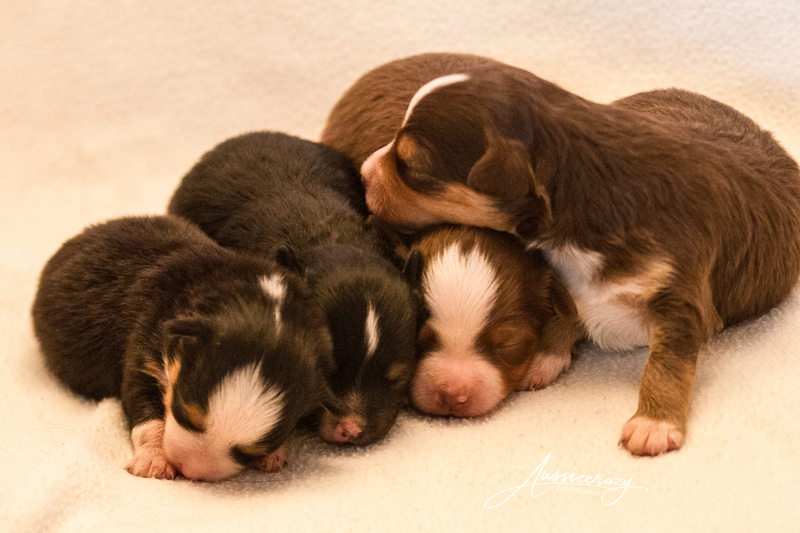 Sansa hat einen gesunden und munteren Wurf geboren. Sie ist eine tolle Mutter. Sie hat den kleinen Smurf aus Lexi´s Wurf ohne zögern adoptiert. Daher sind auf den Bildern teilweise fünf Welpen zu sehen.