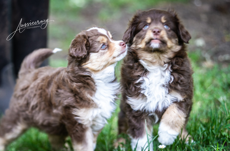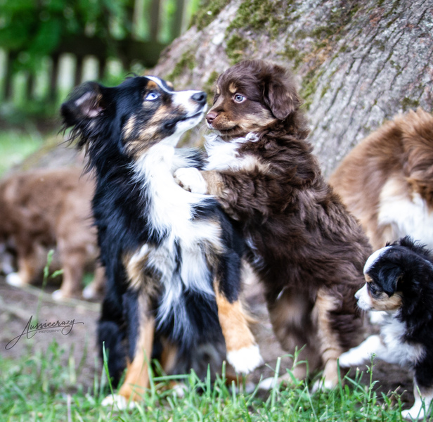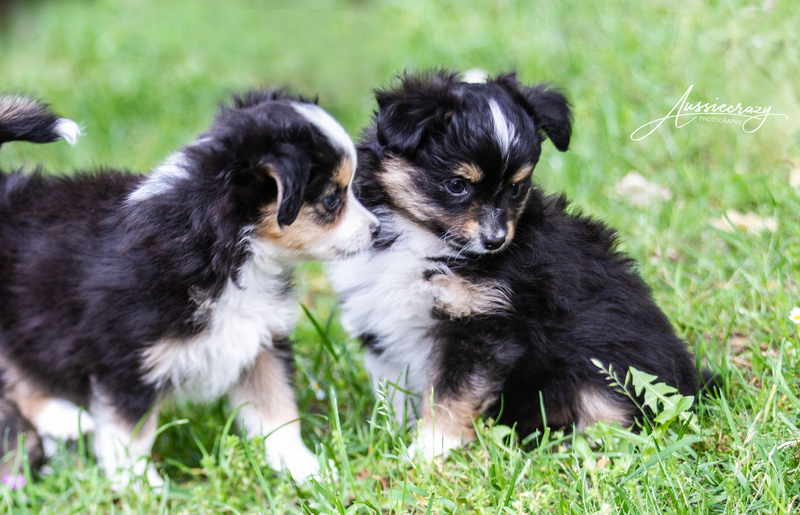 Schon 4,5 Wochen sind die Welpen. Die Zeit rennt. Sie toben schon draußen mit den "Großen", sind das zweite Mal entwurmt und stehen auf Rindfleischbällchen.