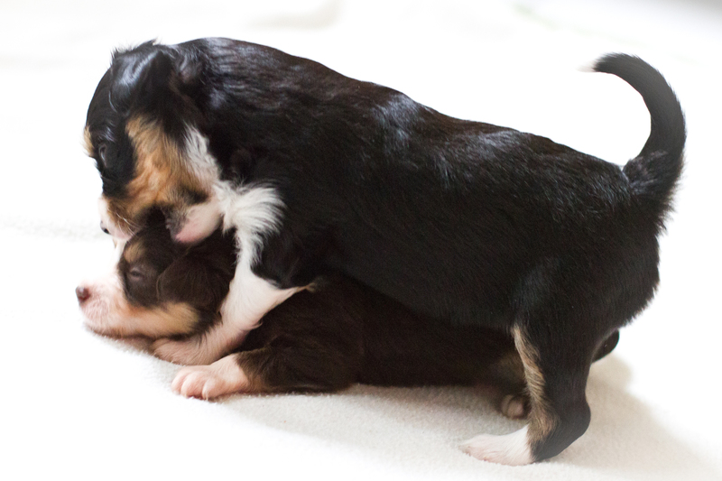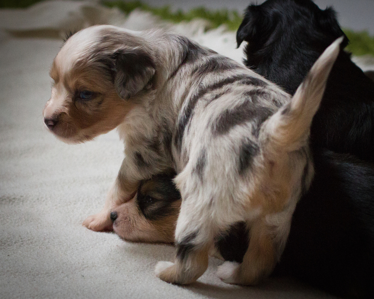 26 Tage sind sie und in der Welpenkiste und im neu aufgestellten Welpenauslauf wird mächtig getobt. Die Augen sind auf und man kann bei einigen Welpchen schon erahnen, dass sie blaue Augen haben werden.