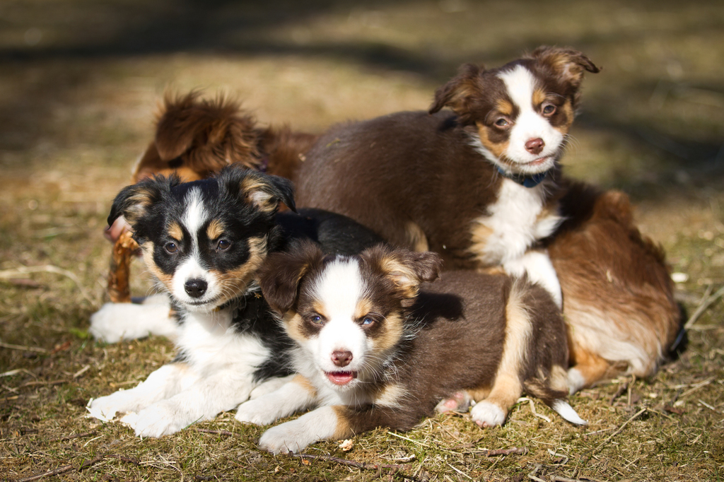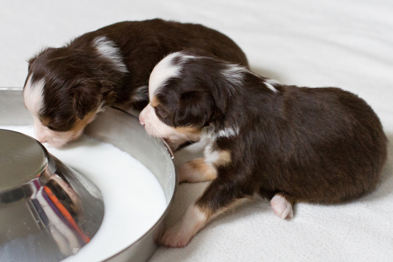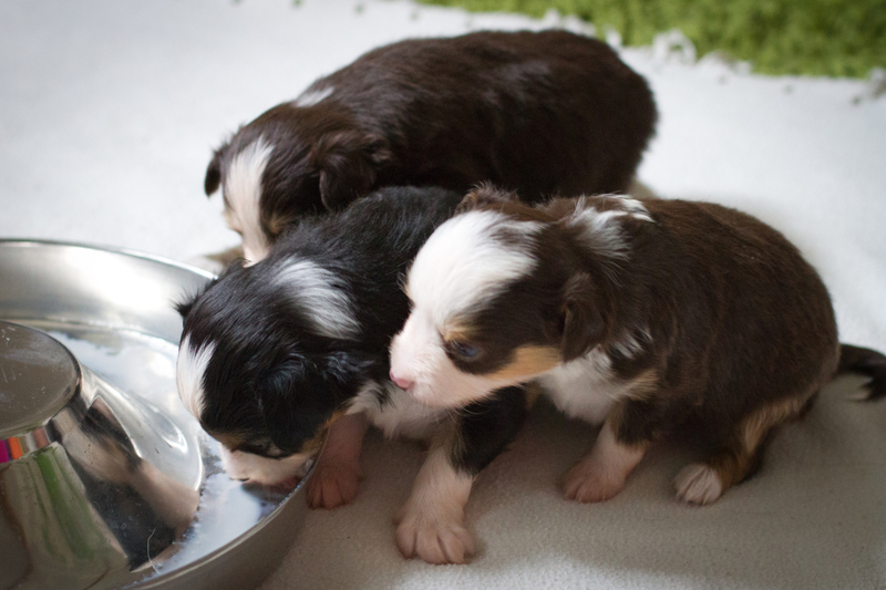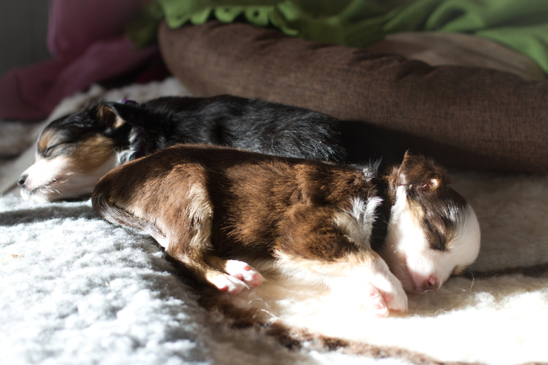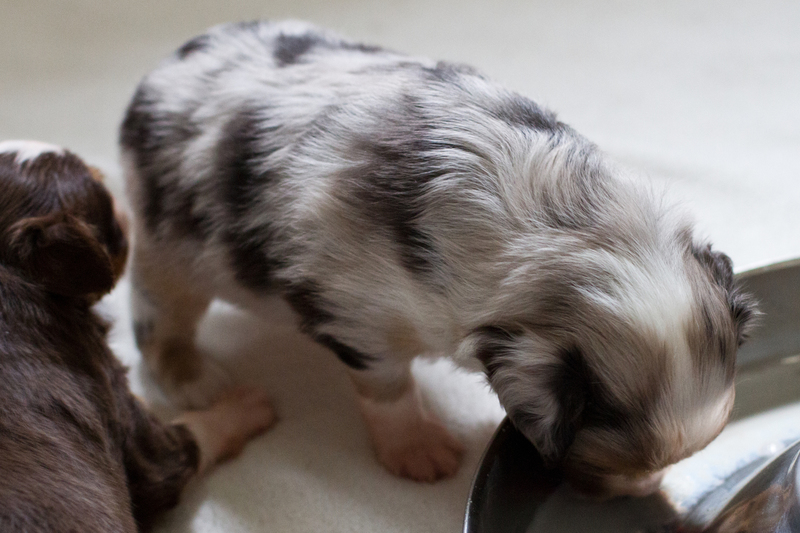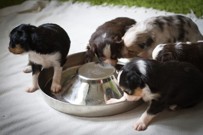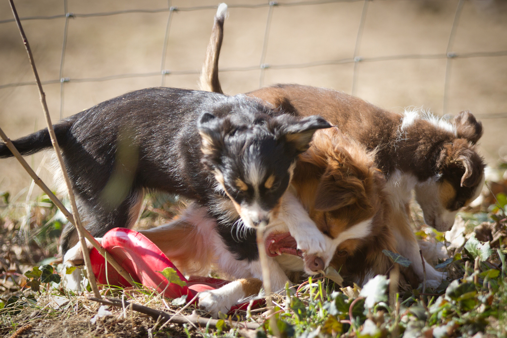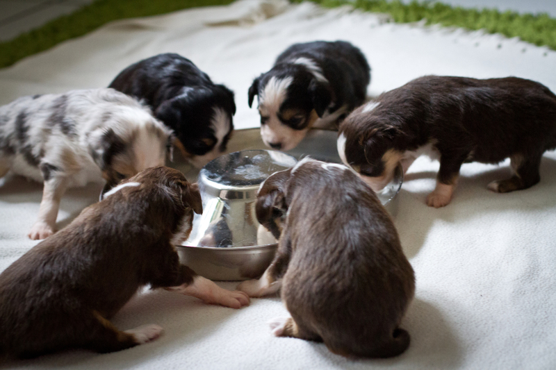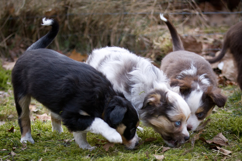 40 Tage sind sie nun schon und dabei die Welt zu erkunden. Mit den großen Hunden wird durchs Haus getobt und auch draußen ist es super spannend. Super lecker fanden sie ihr erstes Barf Fleisch.
