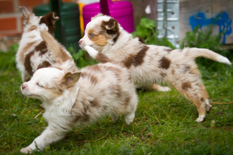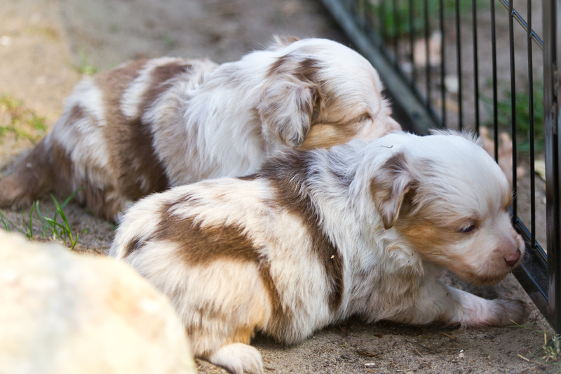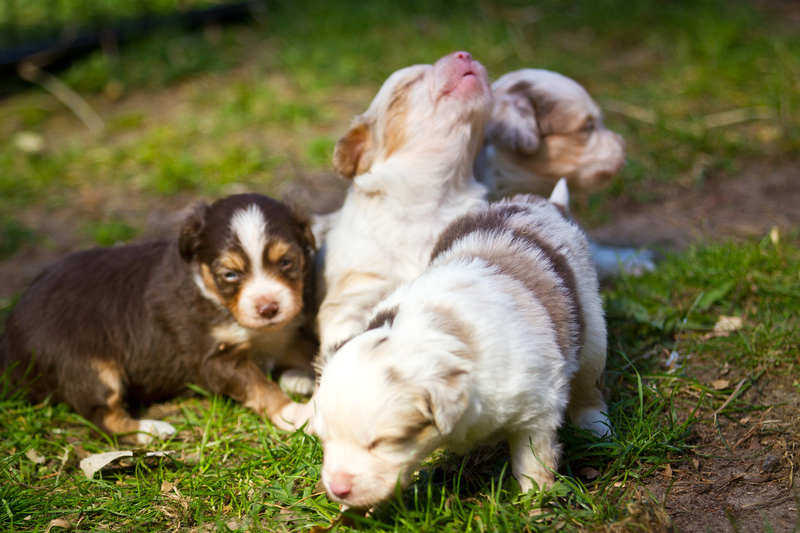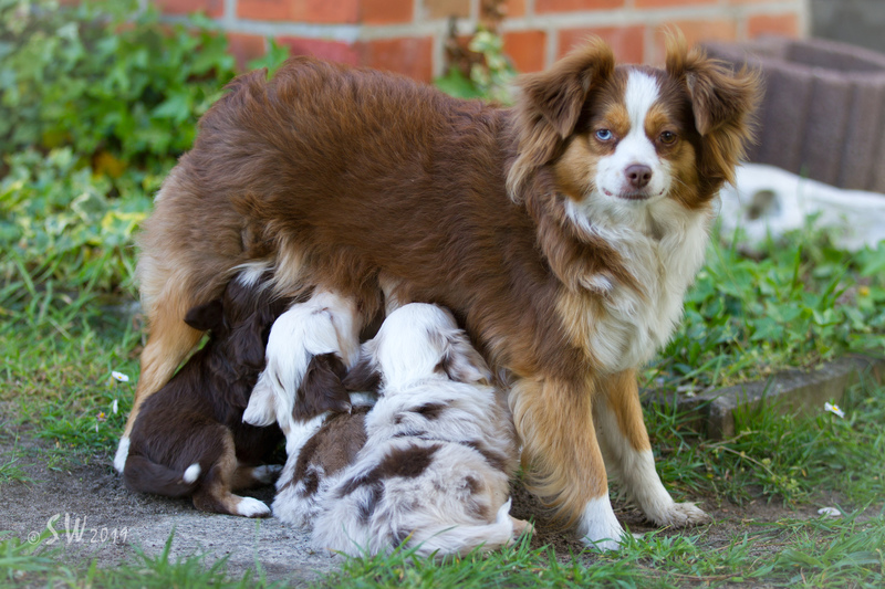 Außerdem wurden die Welpen nun an ihrem dritten Wochenende das erste Mal entwurmt. Alle waren tapfer. Und sie hatten den ersten Besuch und zwei Rüden haben das Herz von tollen Familien gewonnen. Der red tri Rüde, unser kleines Grummelchen heißt nun Oscar und der zweite red merle Rüde wird vielleicht den Namen Bali bekommen. Die Hündin ist bis auf weiteres reserviert. Wir werden sehen. Es bleibt spannend :-).